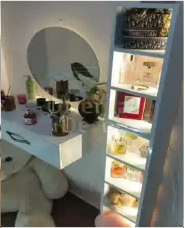 ديكور مرآة مع صندوق ورفّين على الجانبين