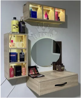 ديكور مرآة مع صندوق ورفّين جانبيين